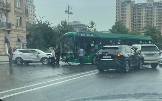 Globalinfo.az “Qafqazinfo”ya istinadən xəbər verir ki, Şıxəli Qurbanov və Füzuli küçələrinin kəsişməsində (Beşmərtəbə adlanan ərazi) “Bakubus” MMC-yə məxsus 2 saylı xətt üzrə hərəkət edən BYD markalı avtobus 2 minik avtomobili ilə toqquşub.