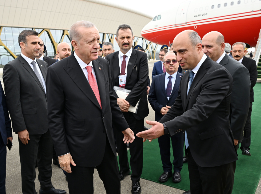 Türkiyə Prezidenti Rəcəb Tayyib Ərdoğanı Azərbaycanın elm və təhsil naziri Emin Əmrullayev, Ağdam, Füzuli və Xocavənd rayonlarında Azərbaycan Respublikası Prezidentinin xüsusi nümayəndəsi Emin Hüseynov və digər rəsmi şəxslər qarşılayıblar.