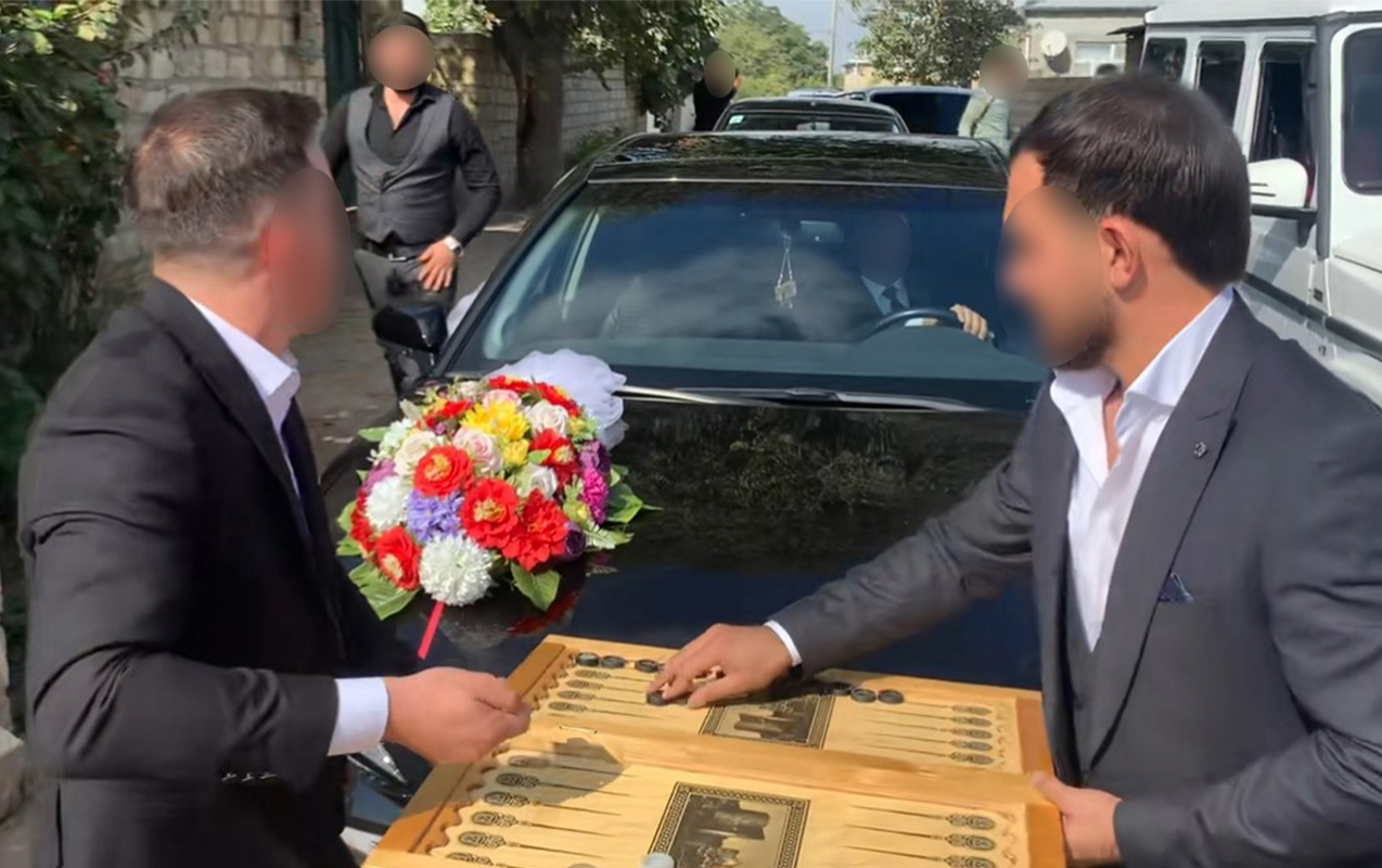 Belə ki, onlar yolun hərəkət istiqamətində dayanaraq gəlin maşınının qarşısını kəsib musiqiyə yüksək səs veriblər, eləcə də arxadan gələn digər avtomobillərin də yolun hərəkət istiqamətində dayanmasına şərait yaradıblar. Bu zaman maşınlardan enən bir neçə nəfər yolun ortasında əllərində rəngli tüstü tutaraq magistralın ortasına masa qoyublar. Masanın ətrafında dizləri üstə nərdtaxta adlanan oyun çərçivəsini açıb bəyin maşından düşərək onlara yaxınlaşmasını, toy şirinliyi kimi pul vermələrini istəyiblər. Bununla da arxadan hərəkət edən toy karvanına aidiyyəti olmayan digər avtomobillərdəki şəxslərin dayanaraq onları gözləməsinə zəmin yaradıblar. Bu da digər vətəndaşların narazılığı ilə nəticələnib.