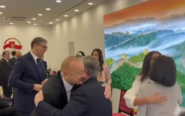 Globalinfo.az xəbər verir ki, Azərbaycan lideri Serbiya Prezidenti Aleksandr Vuçiçlə söhbət edərkən otağa onların özbəkistanlı həmkarları öz xanımı ilə daxil olub.