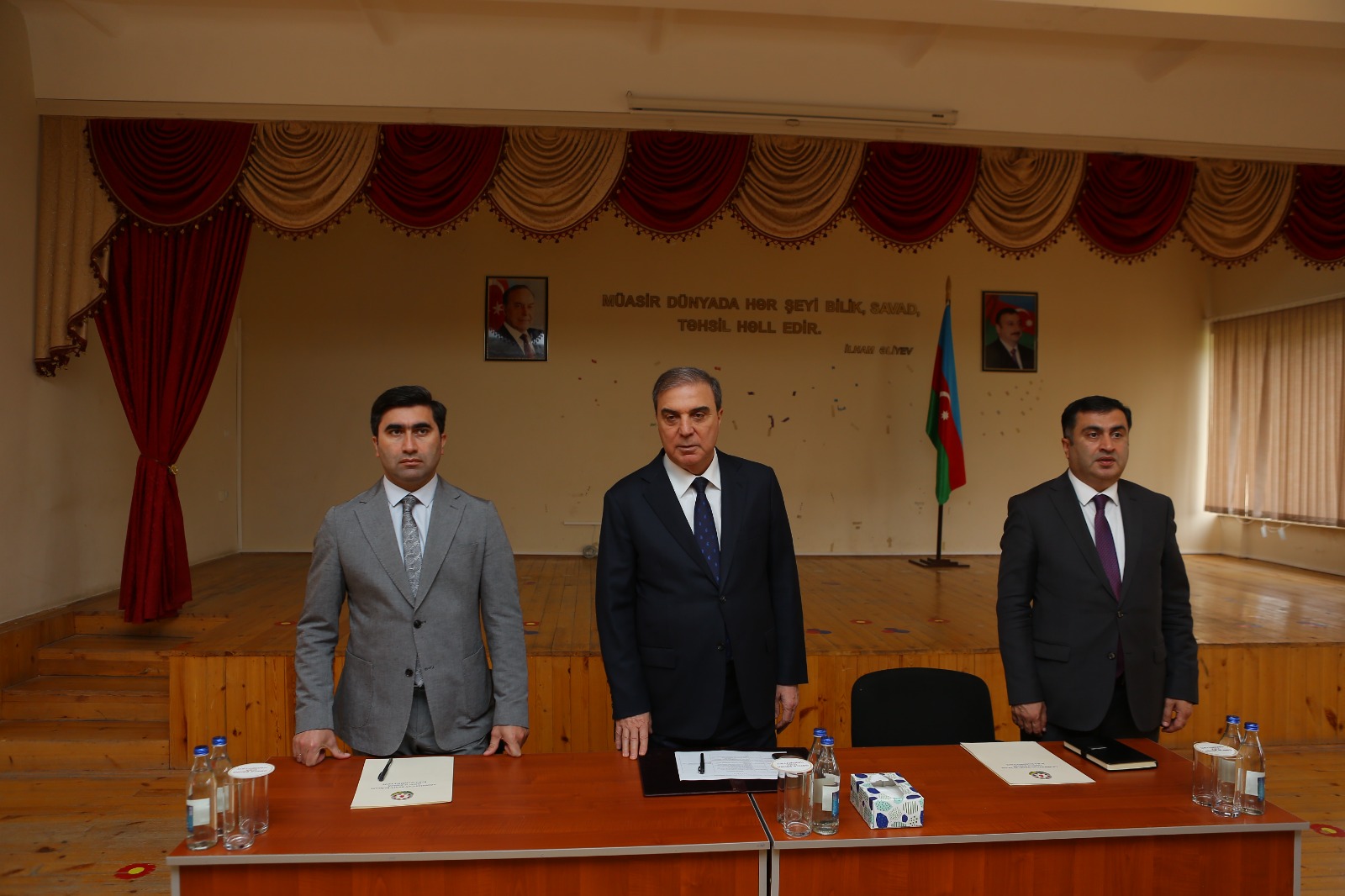 Əvvəlcə rəsmilər təhsil müəssisənin şəhid məzunlarının əziz xatirəsinə həsr olunmuş löhvəni ziyarət edib, önünə tər çiçəklər düzüblər.