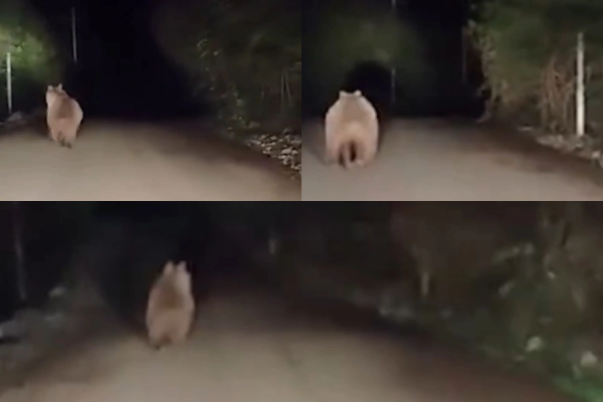Görüntülərdə ayının gecə saatlarında yaşayış məntəqələrinə yaxın yolda gəzdiyi qeydə alınıb.