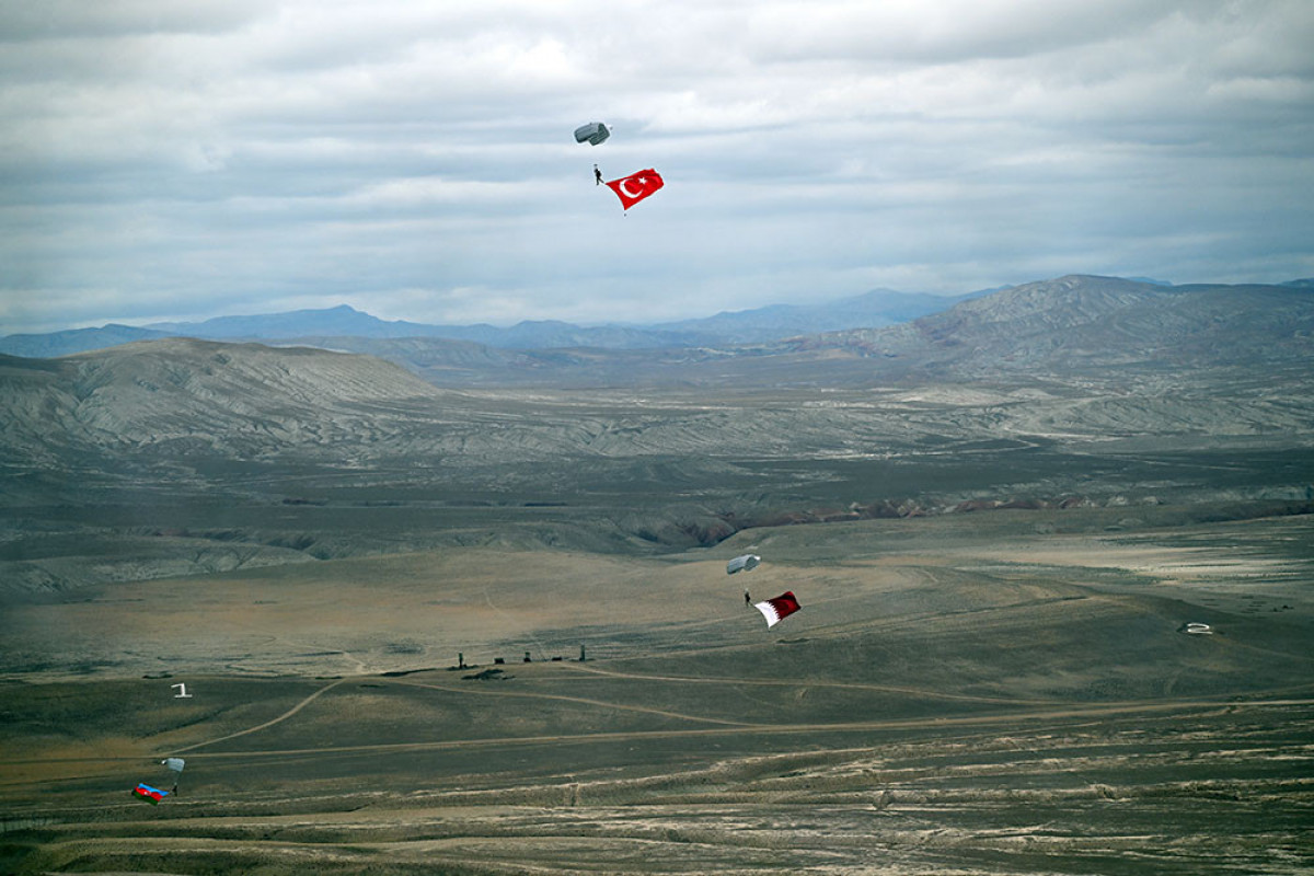 Təlimin yekununda iştirakçı ölkələrin bayraqları ilə paraşüt tullanışları həyata keçirilib.