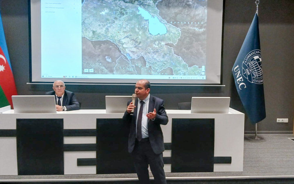 Azərbaycan Dövlət İqtisad Universitetində “Enviromental Protection First” Koalisiyası tərəfindən seminar keçirilib. Tədbirdə universitetin tələbələrinə Ermənistanın Cənubi Qafqazın ekologiyasını zəhərləyən dağ-mədən sənayesi fəaliyyətini ifşa edən interaktiv rəqəmsal xəritə barədə məlumat verilib. Seminarda ekologiya mühəndisliyi və iqtisadi idarəetmə ixtisasları üzrə təhsil alan tələbələr iştirak ediblər.